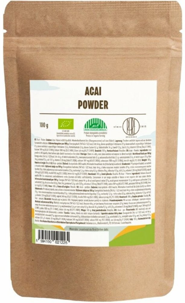 Acai prášek je vyráběn sušením z čerstvých acai bobulí (Euterpe oleracea), které jsou nabité antioxidanty, vitamíny, minerály, vlákninou a zdraví prospěšnými mononenasycenými a polynenasycenými mastnými kyselinami (zdravé tuky). Plody Acai jsou bohaté především na antokyany, což jsou antioxidanty dodávající acai specifickou fialovou barvu. Antokyany mají řadu pozitivních účinků na organismus. Acai...