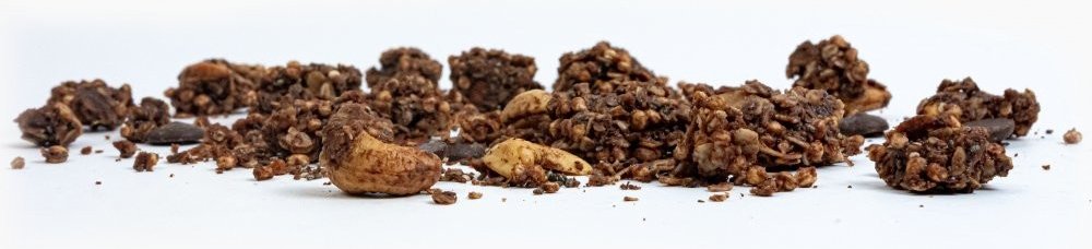 Složení: bezlepkové ovesné vločky*, kokosový olej*, kokosový sirup*, (10 %) kousky hořké čokolády* (kakaová hmota*, třtinový cukr*, kakaové máslo*), kešu ořechy*, kokosová smetana*, (6,3 %) kokosové chipsy*, chia semínka*, pufovaná quinoa*, kakao prášek*, kokosové mléko sušené*. *Surovina v BIO kvalitě. Výrobek je bezlepkový a veganský. Alergeny jsou vyznačeny tučně ve složení. Může obsahovat stopy mléka a arašídů. Tento produkt obsahuje 100% ingrediencí v BIO kvalitě. Minimální trvanlivost (číslo šarže) na zadní straně obalu.