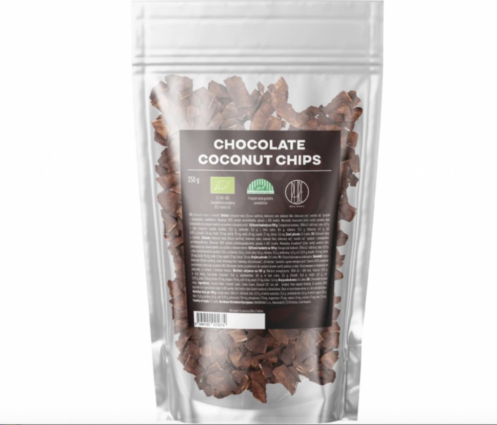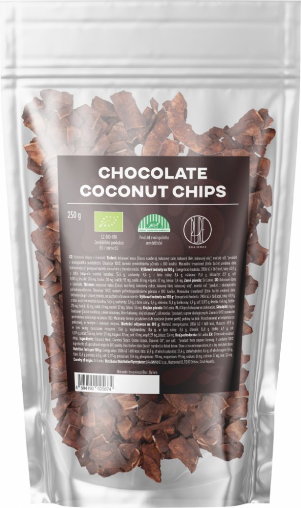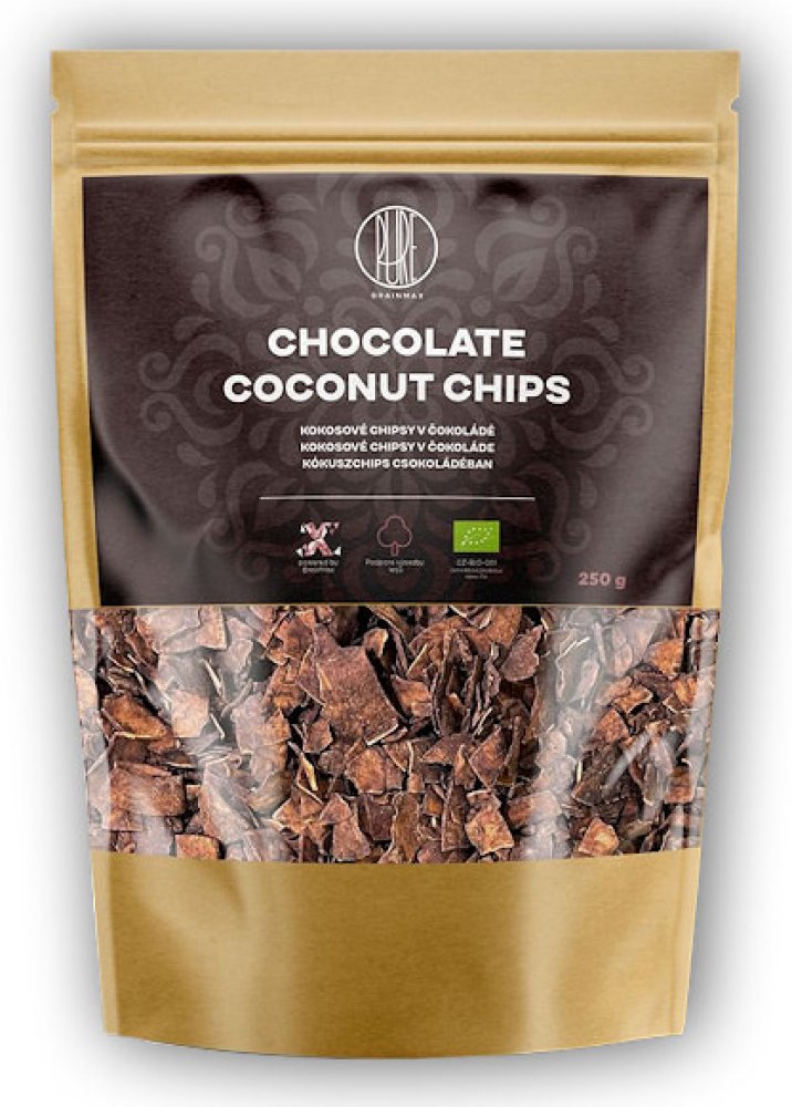 BrainMax Pure Kokosové chipsy v čokoládě BIO 250 g