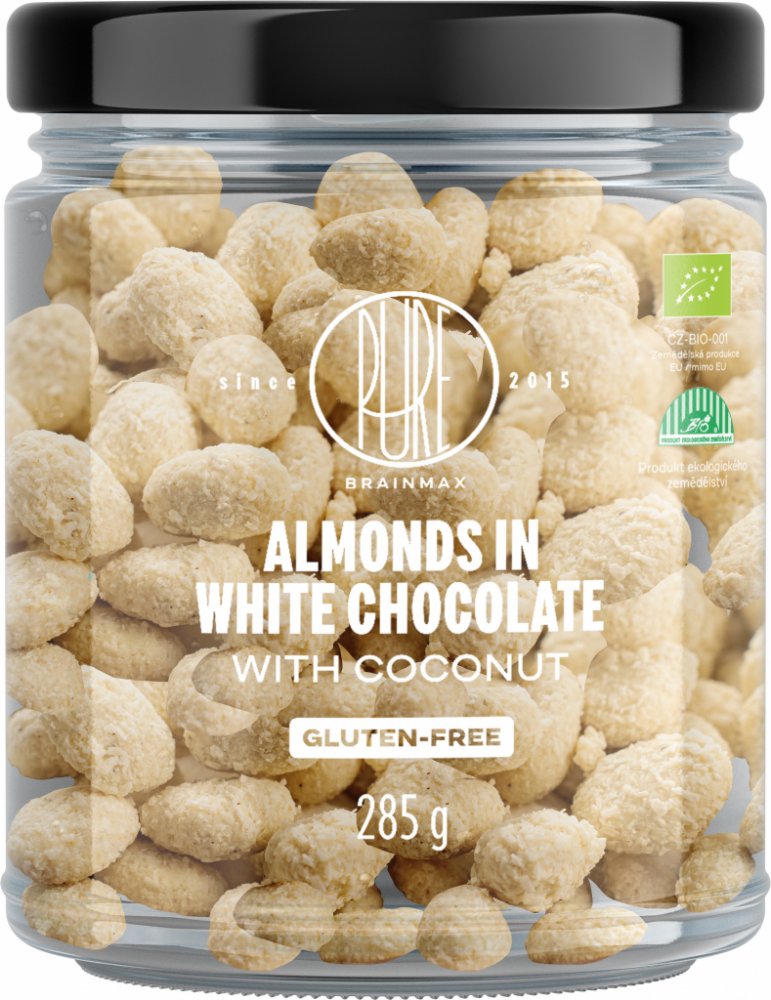 BrainMax Pure Mandle v bílé čokoládě s kokosem BIO 285 g
