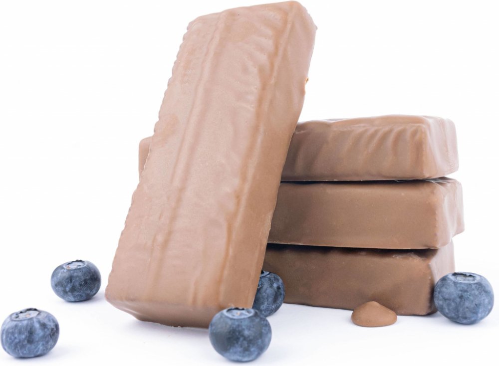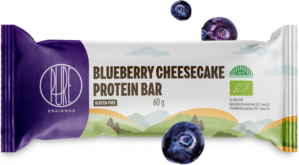Borůvkový cheesecake: (23 %) směs proteinů (syrovátkový protein*, mléčný protein*), (23 %) mléčná čokoláda* (třtinový cukr*, sušené mléko plnotučné*, kakaové máslo*, kakaová hmota*, emulgátor: sojový lecithin*, vanilkový extrakt* ), čekankový sirup, mandlový krém*, zvlhčující látka: glycerol*, kakaové máslo*, (3 %) lyofilizované borůvky, sladidlo: erythritol*, přírodní aroma lesních plodů. Obsahuje 100 % surovin zemědělského původu v BIO kvalitě.