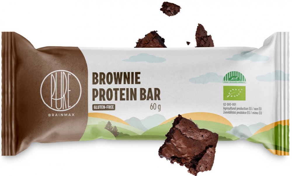 Brownie: (23 %) směs proteinů (syrovátkový protein*, mléčný protein*), kukuřičná vláknina*, (17 %) hořká čokoláda* (kakaová hmota*, třtinový cukr*, kakaové máslo*, emulgátor: sojový lecitin*, vanilkový extrakt*), kešu krém*, kakaová hmota*, zvlhčující látka: glycerol*, kakaové máslo*, sladidlo: erythritol*. Obsahuje 100 % surovin zemědělského původu v BIO kvalitě.