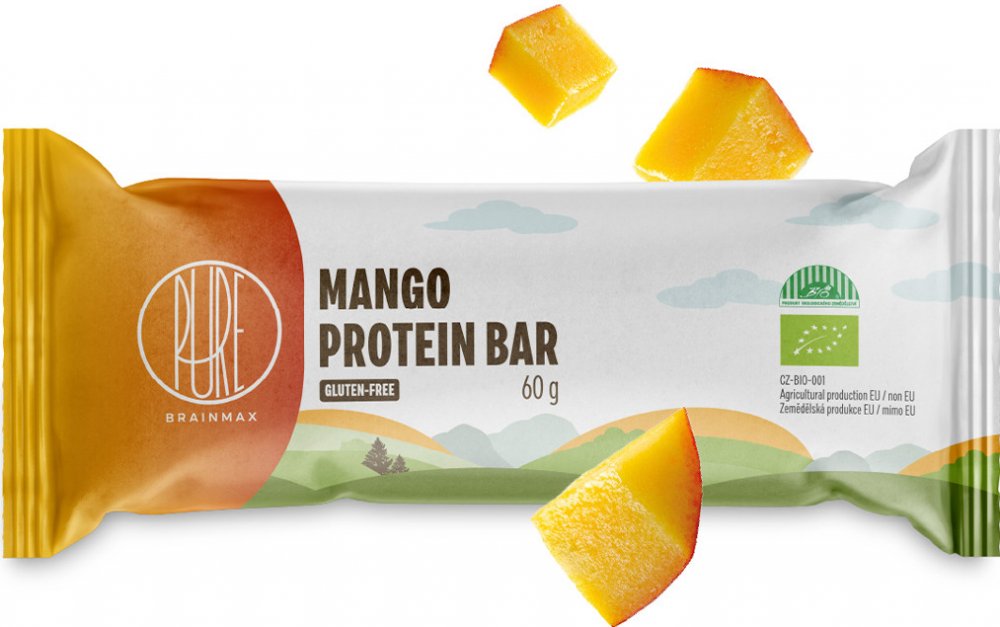 Mango: (25 %) směs proteinů (syrovátkový protein*, mléčný protein*), kukuřičná vláknina*, (16,6 %) bílá čokoláda* (třtinový cukr*, sušené mléko plnotučné*, kakaové máslo*, kakaová hmota*, emulgátor: sojový lecithin*, vanilkový extrakt* ), mandlový krém*, zvlhčující látka: glycerol*, kakaové máslo*, sladidlo: erythritol*, lyofilizované mango*, regulátor kyselosti: kyselina citronová, přírodní aroma. Produkt obsahuje 98,1 % BIO surovin.