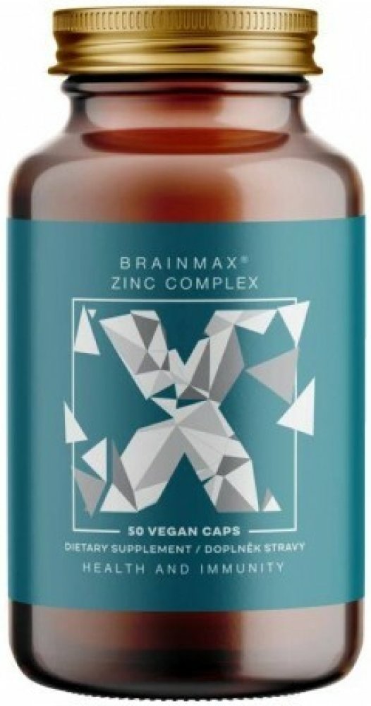 BrainMax Zinc Complex je synergická kombinace vysoce biodostupné formy zinku, selenu, mědi. Každá kapsle obsahuje 15 mg elementárního zinku, 1 mg mědi a 490 mg bio kurkumy. Zinek ve formě bisglycinátu zinečnatého je pro tělo nejlépe vstřebatelnou formou a v kombinaci s mědí ve formě citrátu se ještě zvyšuje jeho vstřebatelnost.