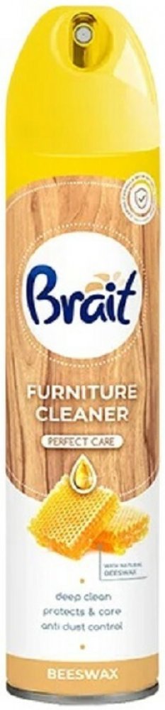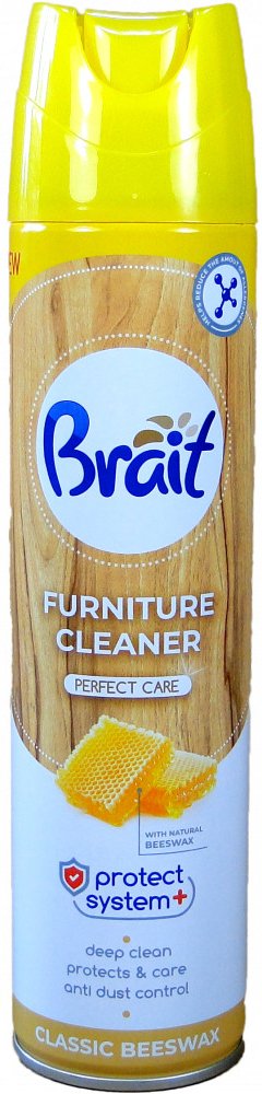 Nový čistič nábytku Brait je nejmodernější čisticí přípravek ve formě jemné emulze, který poskytuje vynikající ochranu dřevěných povrchů. Systém protect+ znamená vynikající kvalitu čištění. Přírodní včelí vosk zajistí výjimečnou ochranu a péči. Protiprachové složení podporuje v boji proti alergenům.