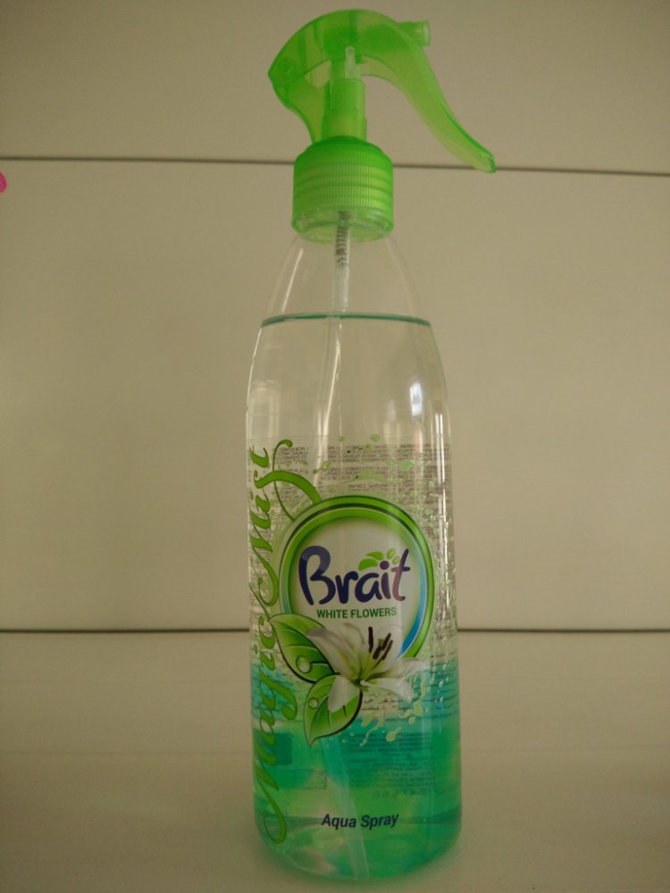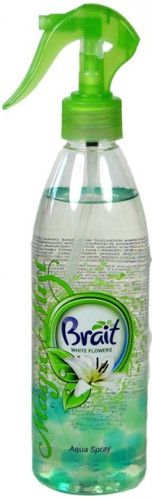 Lehký osvěžovač vzduchu a textilu ve spreji Brait Magic Mist Ocean na vodní bázi s barevnými kuličkami s parfémem s vůní bílých květů a s unikátním mechanickým rozprašovačem bez hnacího plynu skvěle osvěžuje vzduch.