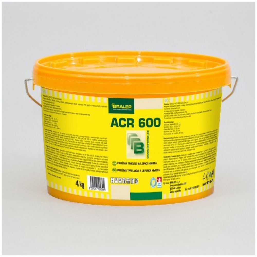 BRALEP ACR 600Vlastnosti:- nehořlavé, nejedovaté- neobsahuje rozpouštědla- vhodné pro podlahové vytápění- po zaschnutí mrazuvzdorné a pružné Oblast použití:Lepidlo BRALEP ACR 600 je určeno k lepení obkladaček, dlaždic, polystyrénových desek a podhledů, PVC apod. ve vnitřních trvale suchých prostorech. Tyto krytiny lze lepit na vyrovnávací hmoty firmy BRALEP, beton, dřevo, umakart, staré obklady a jiné savé i nesavé podklady. Lepidlo není určeno pro prostředí s častým působením tekoucí nebo kondenzované vody. BRALEP ACR 600 lze použít i jako pružnou tmelící hmotu.Složení:Disperze na bázi akrylátů s organickými a anorganickými přísadami zvyšujícími lepivost.Technické údaje