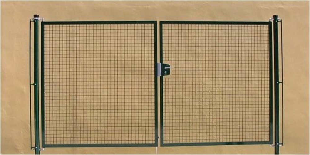 Klasická dvoukřídlá brána poplastovaná. Hnědá. Šíře 4150 mm. Výška 1250 mm. Vjezdová brána.