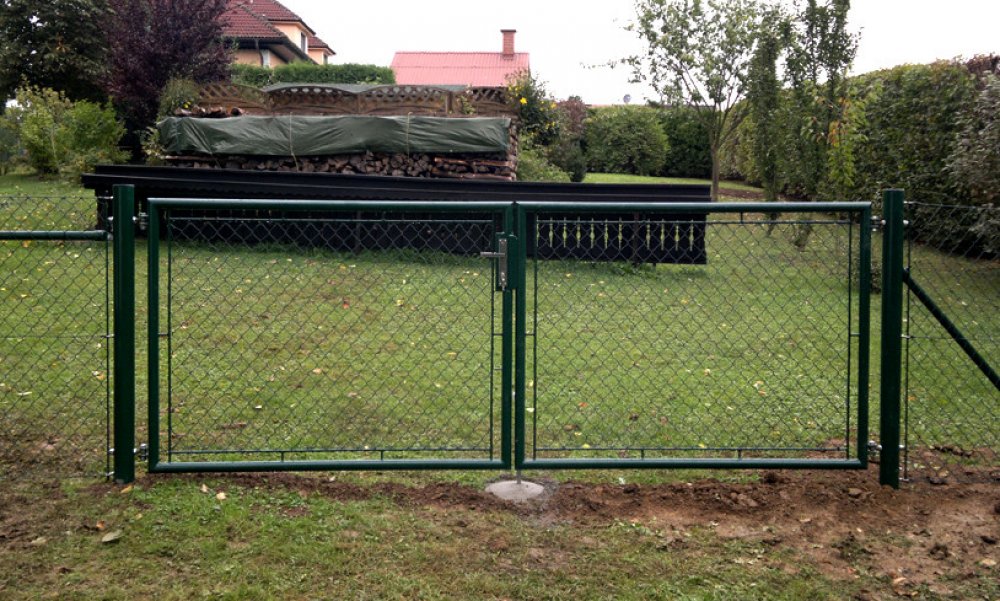 Brána trubková dvoukřídlá Zn+komaxit s pletivovou výplní, vhodná k plotům z pletiva s výběrem šířky a výšky, různé barvy RAL na zakázku. Možnost dodání bez sloupků, jen s panty.