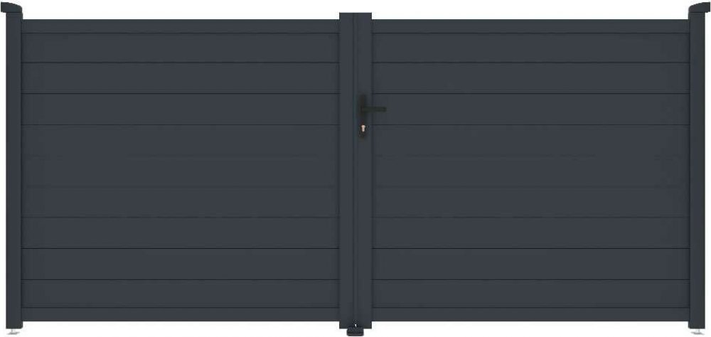 Vjezdová brána dvoukřídlá G21 Orlando o rozměru 350x158 cm v barvě antracit dvoukřídlá hliníková vjezdová brána Marion spojuje funkčnost, bezpečnost, soukromí a atraktivní design vyrobená z lehkého, velmi spolehlivého a bezúdržbového hliníku odolného vůči povětrnostním vlivům hliník je odolný vůči prasknutí, prohnutí a korozi lakovaná práškovým nástřikem pro větší odolnost a stálobarevnost zesílený profil hliníkové brány umožňuje montáž elektrického otevírání šířku je možné přizpůsobit stávajícímu oplocení pokud je pro vás brána příliš široká, můžete ji velmi snadno zúžit pro zúžení stačí před montáží jen přímočarou pilou, nebo ruční okružní pilou zkrátit horní a spodní lištu s lamelami na požadovanou délku a dále postupovat dle montážního návodu výplň s horizontálně uloženými lamelami má dvě výhody... kombinuje dostatek soukromí s moderním designem dodáváno včetně otevírání na kliku a zámku s FAB vložkou v základu má brána 3,5 m široký průjezd materiál: hliník s práškovým nástřikem provedení: dvoukřídlé barva: antracit šířka: 350 cm výška: 158 cm hloubka: 5 cm hmotnost: 65 kg dodáváno: v demontu baleno: ve 3 kartonech