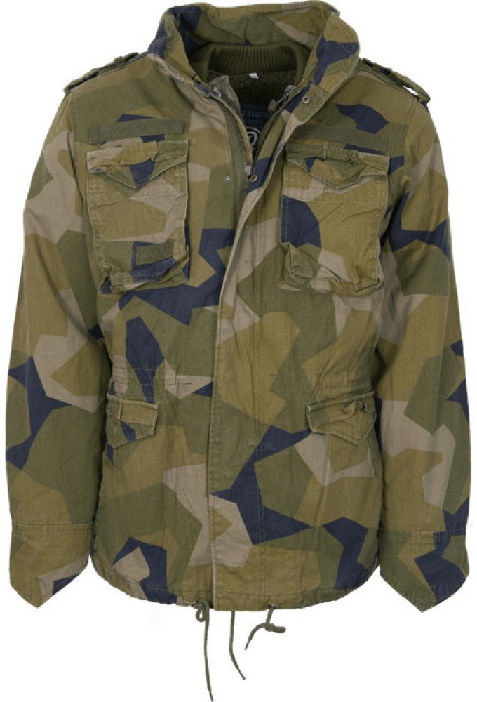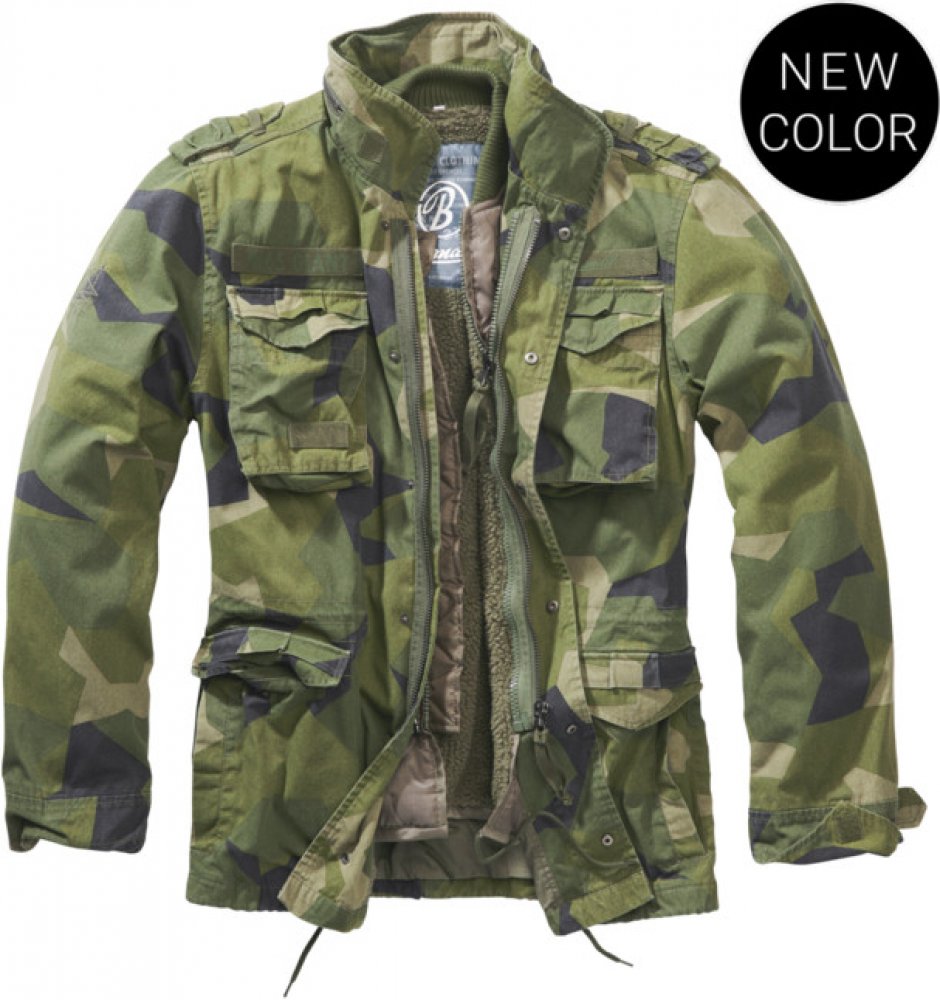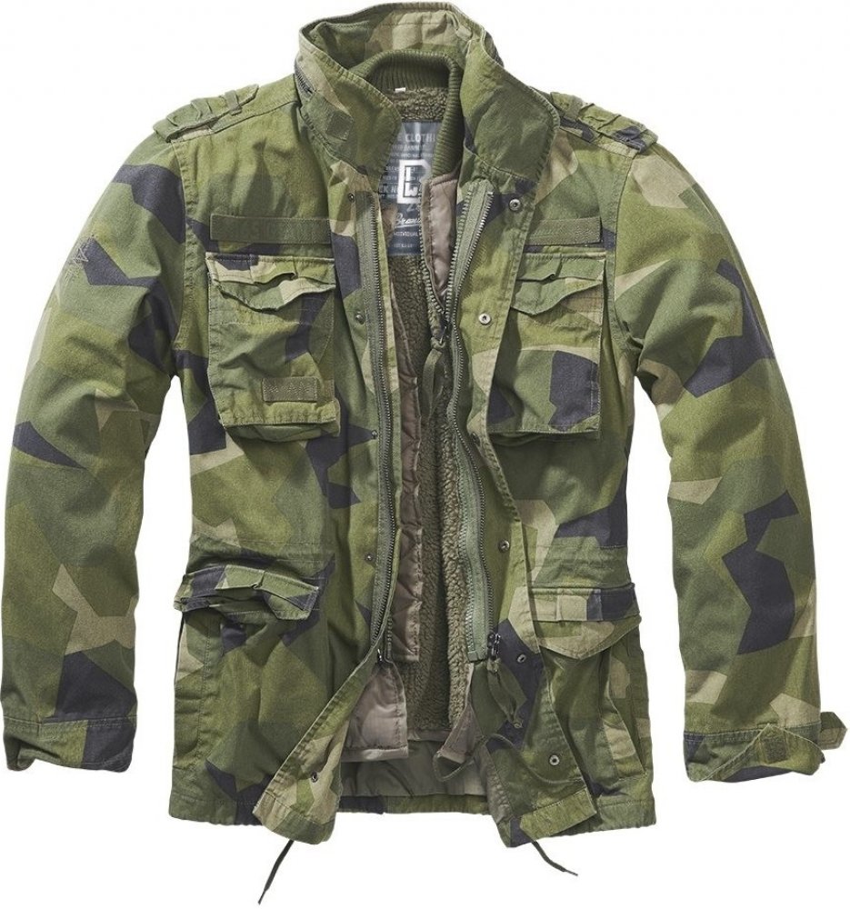 - Pro M65 jsou typické nárameníky, dvě velké náprsní kapsy, dvě prostorné kapsy vpředu pod pasovou linií a v límci skrytá jednoduchá bavlněná kapuce s možností stažení otvoru pro obličej.