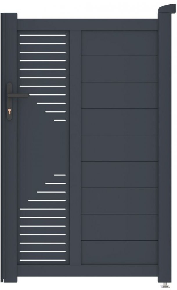 Plotová branka je klíčovou součástí oplocení nemovitosti nebo pozemku. 158 cm vysoká hliníková branka Marion má díky práškovému nástřiku ještě delší životnost,je odolná, atraktivní a její šířku můžete i přizpůsobit stávajícímu oplocení. Otevírání na kliku a zámek s FAB vložkou. odolný a bezúdržbový materiál možnost individuálního přizpůsobení šířky stálobarevnost a čistý moderní design dodání s klikou, zámkem a FAB vložkou atraktivní vizuální prvek – CNC panel zesílený profil – příprava pro elektrické otevírání možnost zkrácení šířky podle svých potřeb Branku Marion jsme vyrobili z lehkého, přitom ale velmi odolného a hlavně bezúdržbového hliníku. Je odolný vůči prasknutí i prohnutí, nezreziví a antracitový odstín, nanesený práškovým nástřikem pro větší odolnost, dodává hliníkové brance atraktivitu a stálobarevnost. Zesílený profil hliníkové branky Marion vám navíc v budoucnu umožní montáž elektrického otevírání branky. Pokud už máte postavené sloupky ze stávajícího oplocení nebo například užší chodník/cestu a branka je příliš široká, můžete ji velmi snadno zúžit.