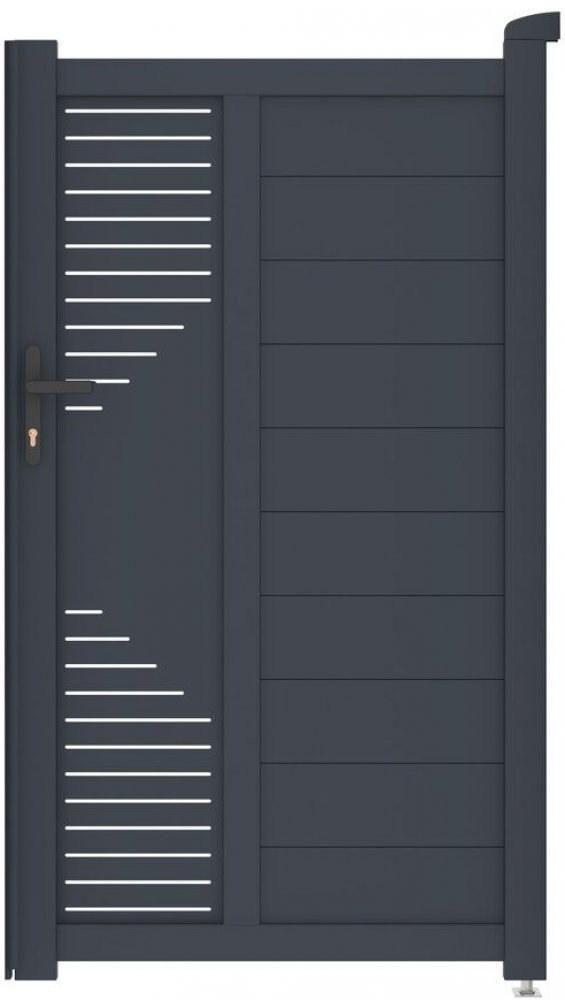 Plotová branka je klíčovou součástí oplocení nemovitosti nebo pozemku. 173 cm vysoká hliníková branka Marion má díky práškovému nástřiku ještě delší životnost, je odolná, atraktivní a její šířku můžete i přizpůsobit stávajícímu oplocení. Otevírání na kliku a zámek s FAB vložkou. odolný a bezúdržbový materiál možnost individuálního přizpůsobení šířky stálobarevnost a čistý moderní design dodání s klikou, zámkem a FAB vložkou atraktivní vizuální prvek – CNC panel zesílený profil – příprava pro elektrické otevírání možnost zkrácení šířky podle svých potřeb Branku Marion jsme vyrobili z lehkého, přitom ale velmi odolného a hlavně bezúdržbového hliníku. Je odolný vůči prasknutí i prohnutí, nezreziví a antracitový odstín, nanesený práškovým nástřikem pro větší odolnost, dodává hliníkové brance atraktivitu a stálobarevnost. Zesílený profil hliníkové branky Marion vám navíc v budoucnu umožní montáž elektrického otevírání branky. Pokud už máte postavené sloupky ze stávajícího oplocení nebo například užší chodník/cestu a branka je příliš široká, můžete ji velmi snadno zúžit.