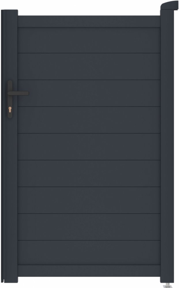 Výplň s horizontálně uloženými lamelami v atraktivním grafitovém provedení kombinuje dostatek soukromí s moderním designem, takže branka s otevíráním dovnitř bude slušet každému typu oplocené stavby.