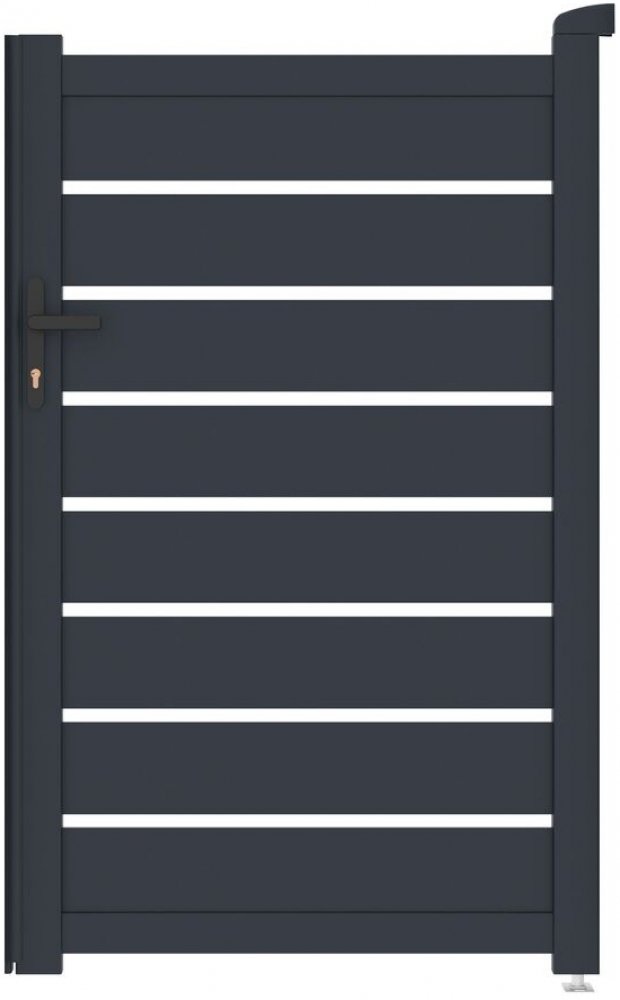 Plotová branka je klíčovou součástí oplocení nemovitosti nebo pozemku. 158 cm vysoká hliníková branka Reno má díky práškovému nástřiku ještě delší životnost, je odolná, atraktivní a její šířku můžete i přizpůsobit stávajícímu oplocení. Otevírání na kliku a zámek s FAB vložkou. odolný a bezúdržbový materiál možnost individuálního přizpůsobení šířky stálobarevnost čistý moderní design dodání s klikou, zámkem a FAB vložkou zesílený profil – příprava pro elektrické otevírá možnost zkrácení šířky podle svých potřeb Branku Reno jsme vyrobili z lehkého, přitom ale velmi odolného a hlavně bezúdržbového hliníku. Je odolný vůči prasknutí i prohnutí, nezreziví a antracitový odstín, nanesený práškovým nástřikem, dodává hliníkové brance atraktivitu a stálobarevnost. Zesílený profil hliníkové branky Reno vám navíc v budoucnu umožní montáž elektrického otevírání branky. Pokud už máte postavené sloupky ze stávajícího oplocení nebo například užší chodník/cestu a branka je příliš široká, můžete ji velmi snadno zúžit.