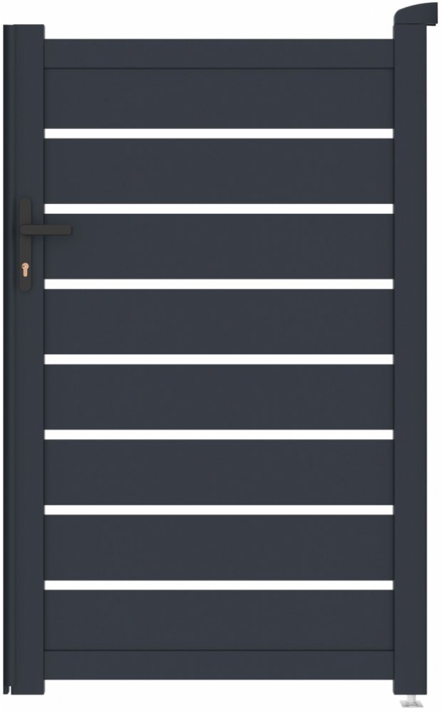 Výplň s horizontálně uloženými lamelami v atraktivním grafitovém provedení kombinuje dostatek soukromí s moderním designem, takže branka s otevíráním dovnitř bude slušet každému typu oplocené stavby.
