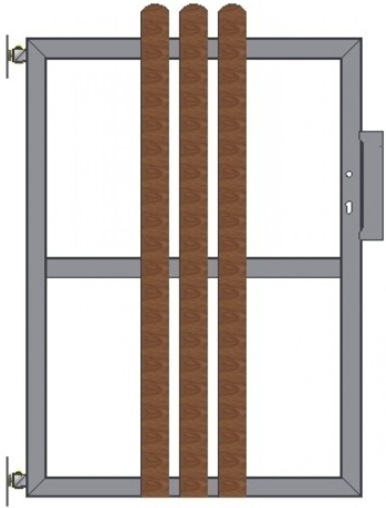 Zakázkově vyráběný rám branky ideální pro výplň z dřevěných latí, plastových plotovek, či jiných vhodných materiálů.