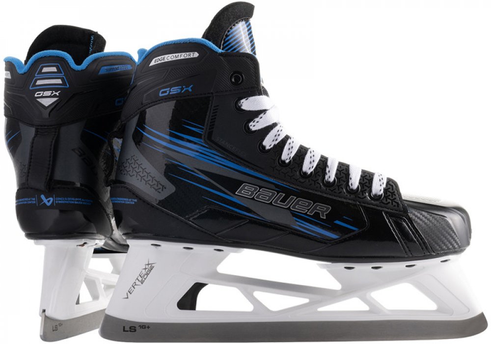 Bauer G.GSX INT 2021 4.5/38 D Brankářské brusle Bauer GSX GOAL pro kategorii Intermediate, které si můžete pořídit v šesti velikostech a dvou šířkách dle tradičního systému číslování D/EE. Brankářům ve věku 13-16 let poslouží jako základní model. Tyto brusle jsou jako stvořené pro hobby brankáře chytající pro zábavu v amatérských zápasech, nebo i pro ty, kteří si jdou občas jen tak zatrénovat. Přestože nejde o model pro elitní gólmany, najdete na něm několik prvků profi bruslí. Brusle Bauer GSX GOAL charakterizuje skelet STANCEFLEX z FLEX COMP kompozitu a podrážka i špička typická pro modelovou řadu Supreme. Jazyk u těchto bruslí pak znáte z modelů z řady Vapor. Zatímco od Supreme si tento model přinesl sílu, od Vaporu výtečnou flexibilitu. Dále se těšte na standardní střih a nový nůž LS1G+, který návrháři vylepšili, aby byl delší a odpovídal potřebám moderního brankáře. Brusle GSX GOAL doporučujeme i pro jejich atraktivní a výrazný design, se kterým zapůsobíte na nejednoho kamaráda či spoluhráče v kabině.
