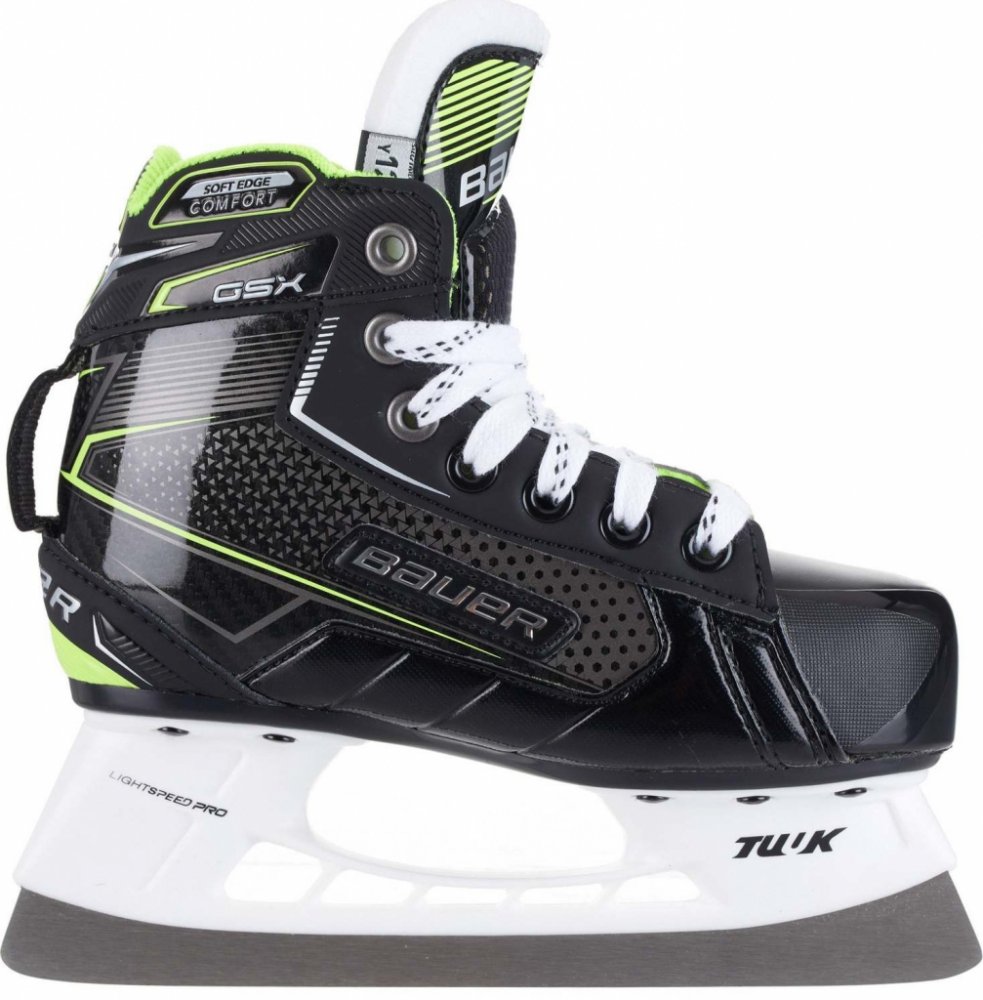 Nová generace brankářských bruslí řady Bauer GSX. Pevný a zároveň pružný kompozitový materiál skeletu Fiber Composite a Stanceflex Technology zajišťují skvělou stabilitu, jistotu a zároveň vysoký komfort při jakémkoli pohybu. Opět je použit nový holder VERTEXX EDGE se systémem rychlé výměny nože, díky čemuž je brusle výrazně lehčí, umožňuje brankáři vyšší agilitu a to vše bez jakékoli újmy na ochranných vlastnostech. Brusle Bauer GSX nabízí za atraktivní cenu nadprůměrnou míru komfortu a vynikajících vlastností.