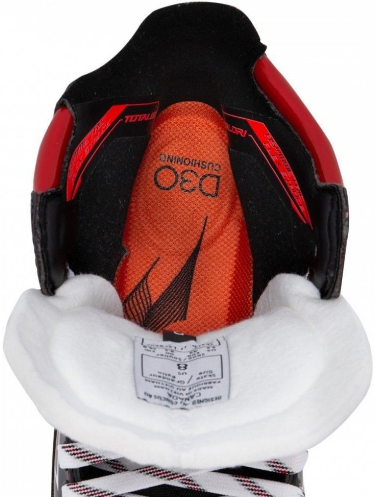 Botička je bezešvá, bez lepidla a bez podešvu, hráč tak brusli cítí jako součást své nohy.