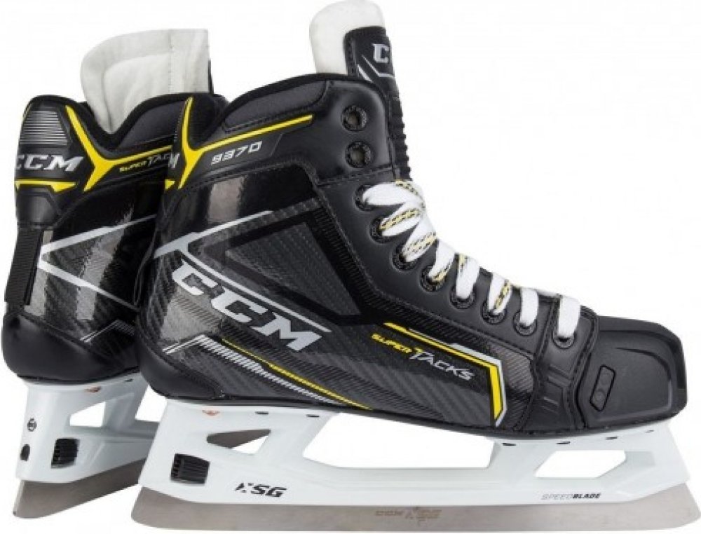 Nejnovější generace brankářských bruslí CCM SUPER TACKS. Komfortní brankářské brusle CCM SUPER TACKS 9370 přináší několik zásadních vylepšení, nová je samotná konstrukce boty s technologií 3D Lasted se syntetickým kompozitem, i kompletně nový holder CCM Speedblade XSG s nožem Speedblade XSG1 +2 mm.