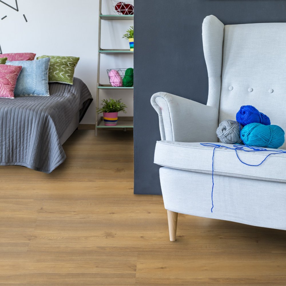 Vinylová plovoucí podlaha se snadno a rychle instaluje díky systému Uniclic®. Podlaha je okamžitě po položení vhodná k užívání a zatížení.