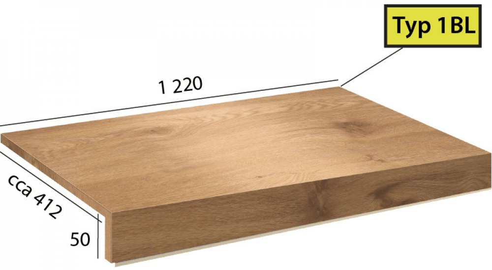 Vinylové schody Ecoline Step v dekoru 9507 Dub noblesní; dílec 1BL - schod bez nosu s boční úpravou (zleva) pro otevřené schodiště (zleva).