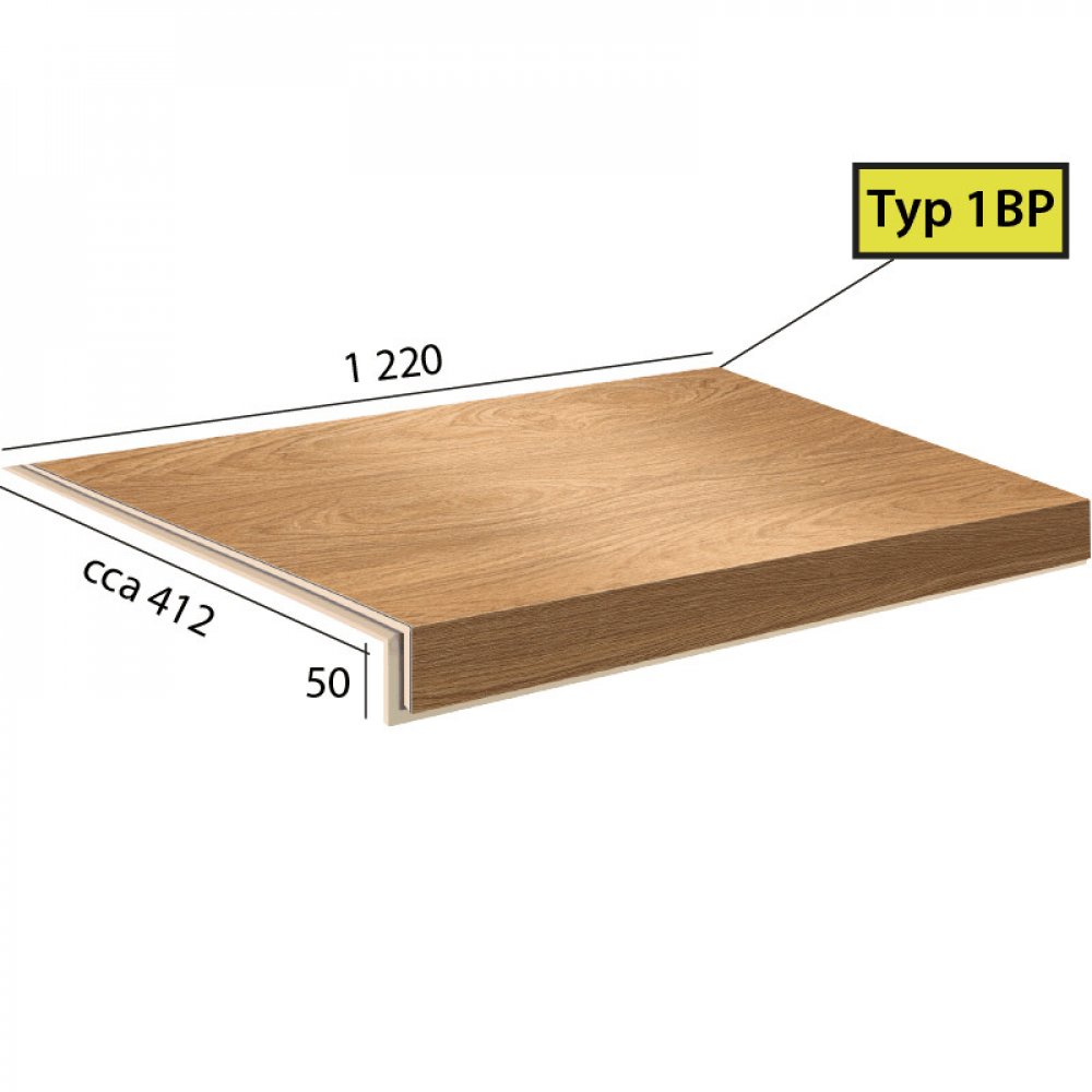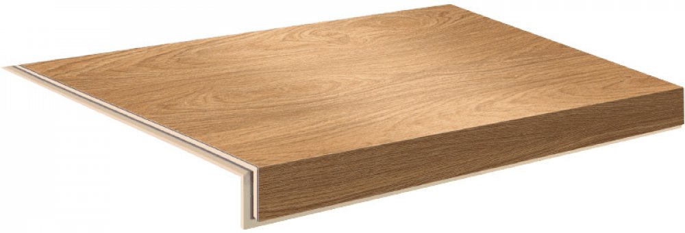 Vinylové schody Ecoline Step v dekoru 9501 Dub přírodní, dílec 1BP - schod bez nosu s boční úpravou pro otevřené schodiště (zprava).