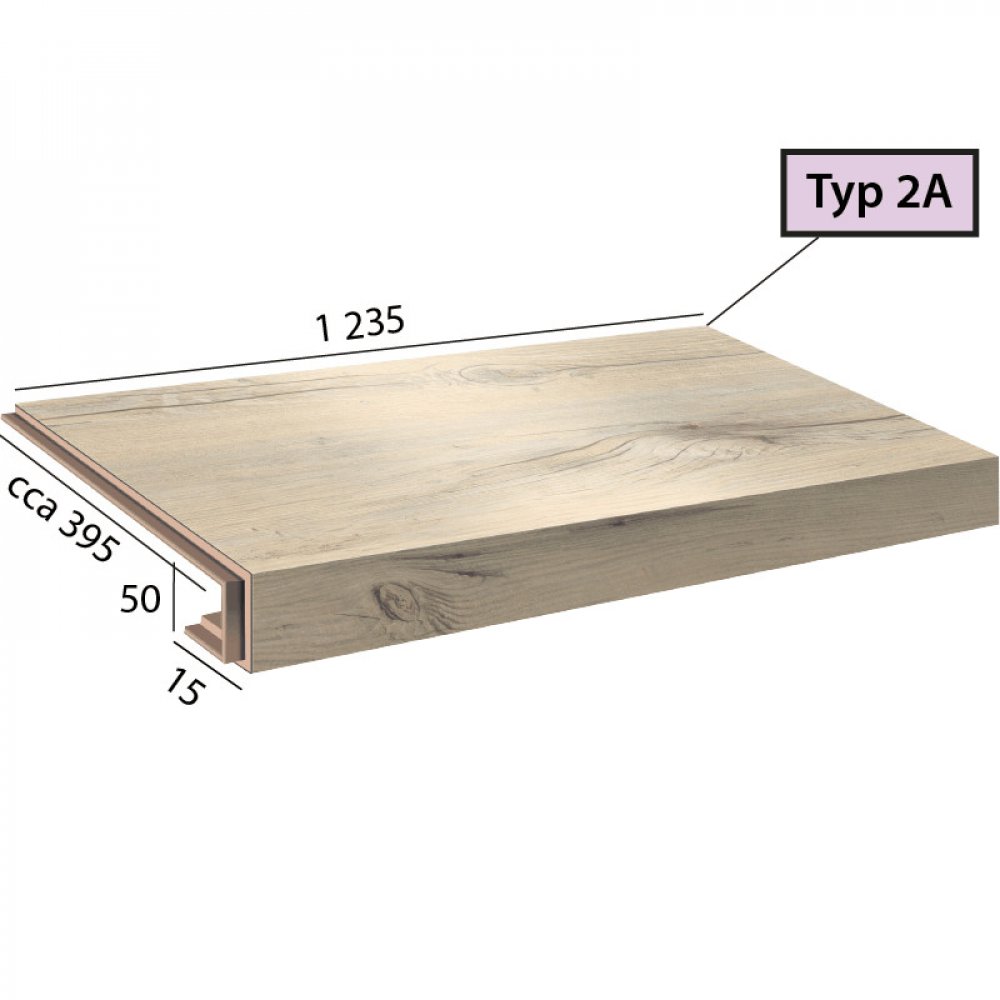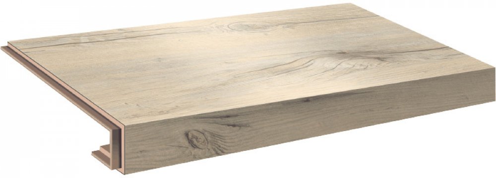 Vinylové schody v dekoru Ecoline Step - 9503 Borovice bílá rustikal, dílec 2A – schod s nosem pro uzavřené schodiště, vlevo i vpravo zámek.