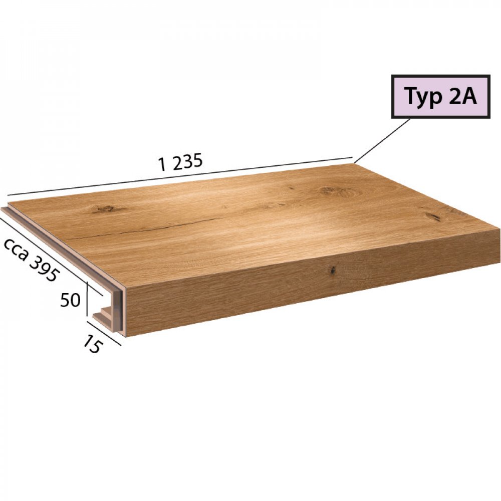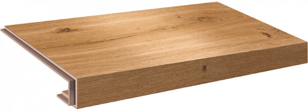 Vinylové schody v dekoru Ecoline Step - 9590 Dub královský hnědý, dílec 2A – schod s nosem pro uzavřené schodiště, vlevo i vpravo zámek.