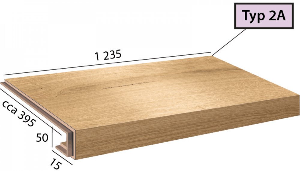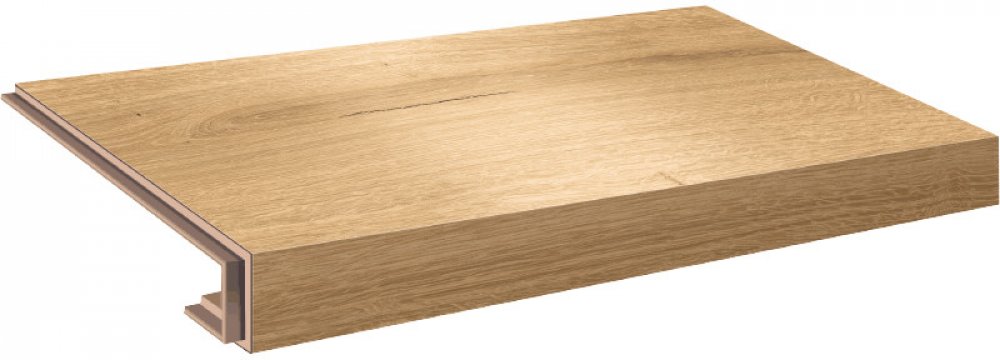 Vinylové schody v dekoru Ecoline Step - 9591 Dub královský světlý, dílec 2A – schod s nosem pro uzavřené schodiště, vlevo i vpravo zámek.