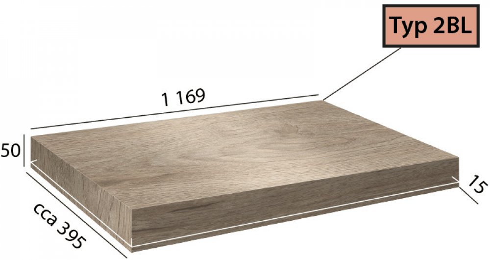 Vinylové schody v dekoru Ecoline Step - 9553 Dub bílý pískový, dílec 2BL – schod s nosem pro orevřené schodiště z levé strany (boční úprava zleva).