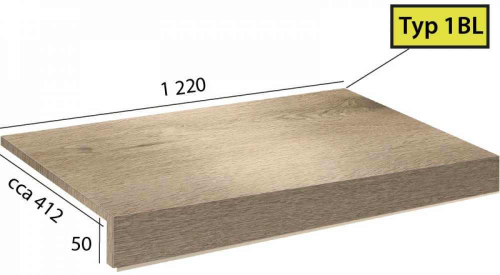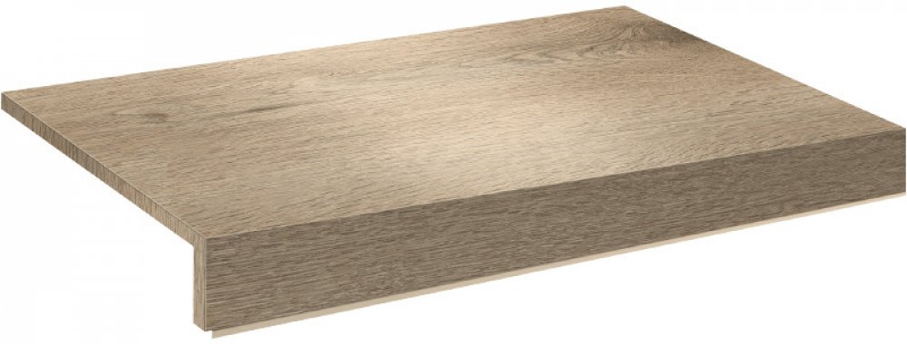 Vinylové schody Objectline Step v dekoru 9870 Dub Costa pískový; dílec 1BL - schod bez nosu s boční úpravou zleva pro otevřené schodiště.