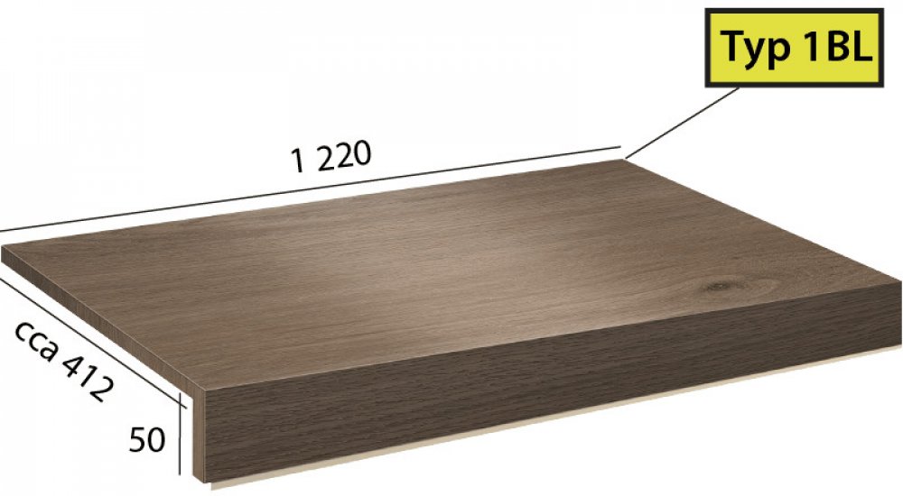 Vinylové schody Objectline Step v dekoru 9872 Dub Toledo; dílec 1BL - schod bez nosu s boční úpravou zleva pro otevřené schodiště.