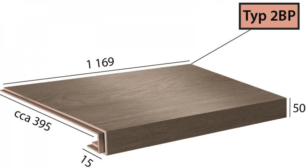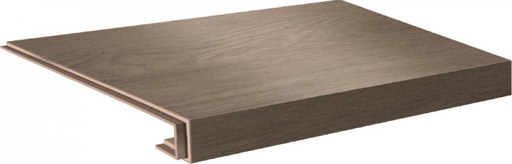 Vinylové schody v dekoru Objectline Step - 9872 Dub Toledo, dílec 2BP – schod s nosem pro orevřené schodiště z pravé strany (boční úprava zprava).