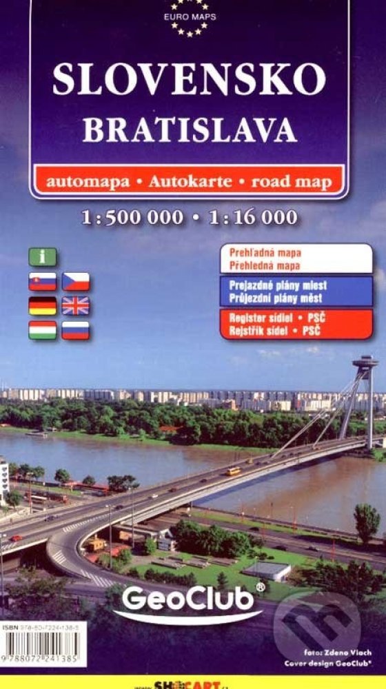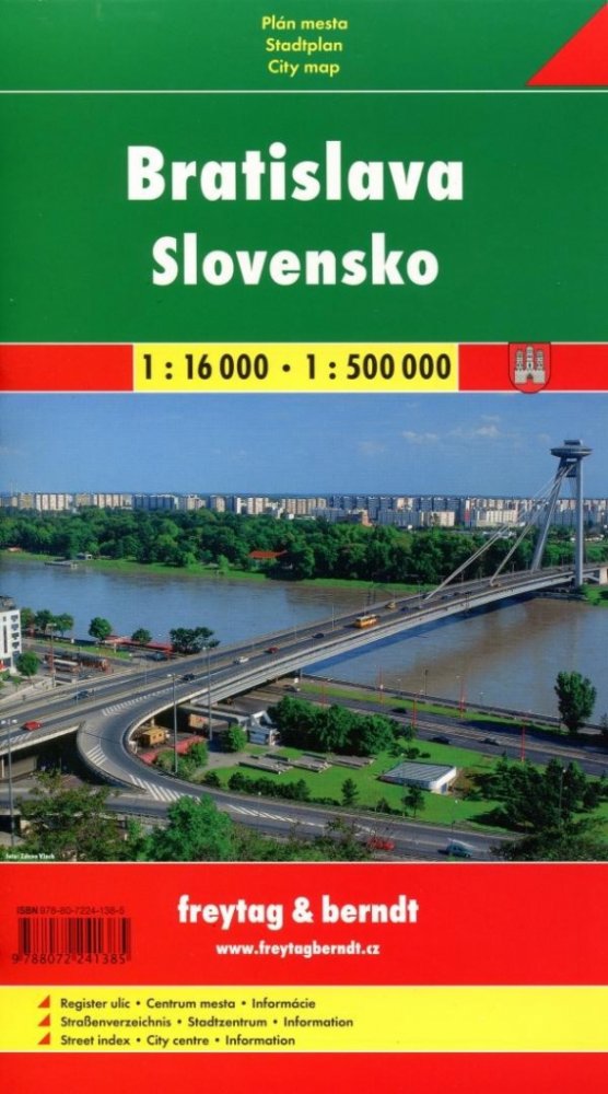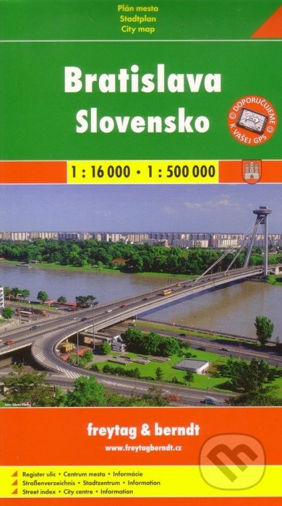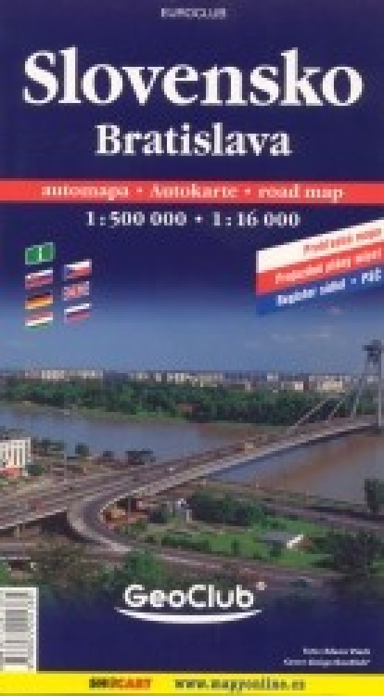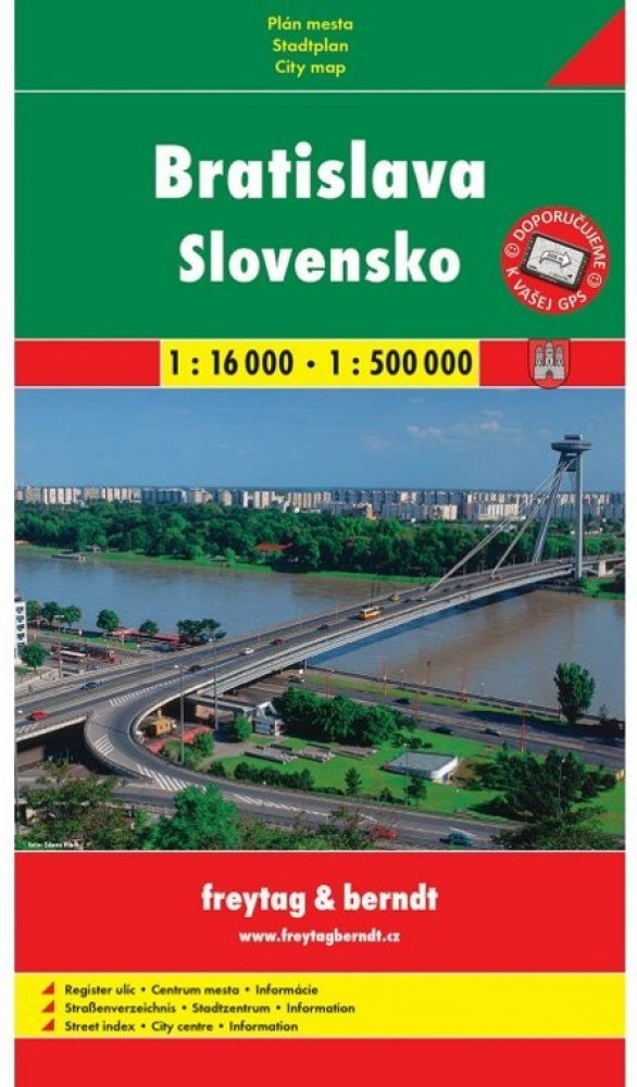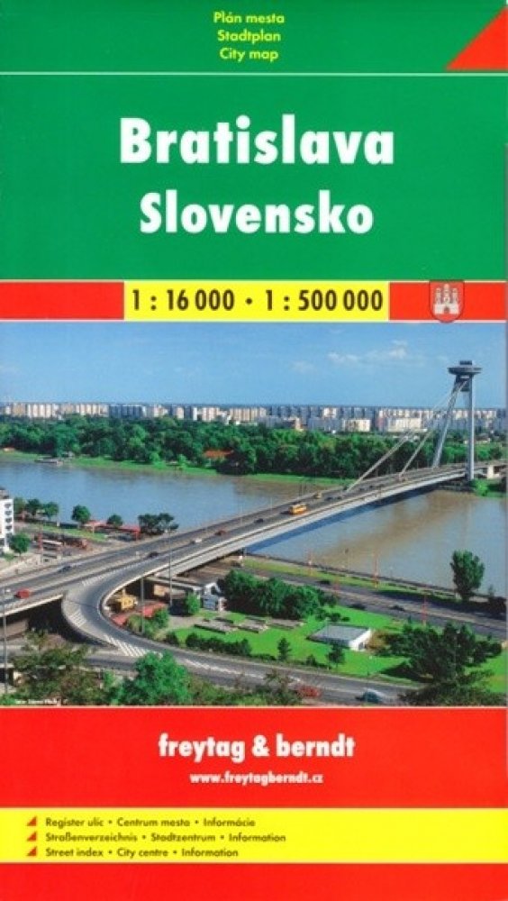 Publikace: Slovensko + Bratislava mapy (1:500.000, 1:16 000) - neuveden. Mapa znázorňuje území daného města v podrobném měřítku a obsahuje podrobnější mapu městského centra s vyobrazením jeho nejvýznamnějších pamětihodností. Nechybí rejstřík a mapa okolí v menším měřítku. Publikace: Slovensko + Bratislava mapy (1:500.000, 1:16 000) - neuveden.