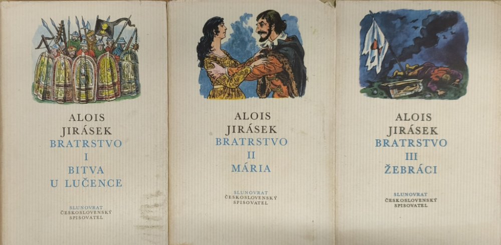 III. - Po trilogii Mezi proudy, líčící vznik a počátky husitství a po proti všem, podávajícím vrchol síly a slávy husitství, vzniká Bratrstvo jako třetí část (Husitský král vznik až později) Jiráskovy husitské epopeje. Část podávající pád a závěr velkolepého husitského dramatu. I Bratrstvo je proto plno husitské síly, ale je-li to v Mezi proudy teprve se rodící, prodírající síla a v Proti všem vítězná, celou Evropu přemáhající síla, je to v Bratrstvu síla již jen vybíjející se pro tu sílu samu. Není proto menší, ve své nevázanosti je snad ještě větší, divočejsí, ale už ne tvůrčí, budující.