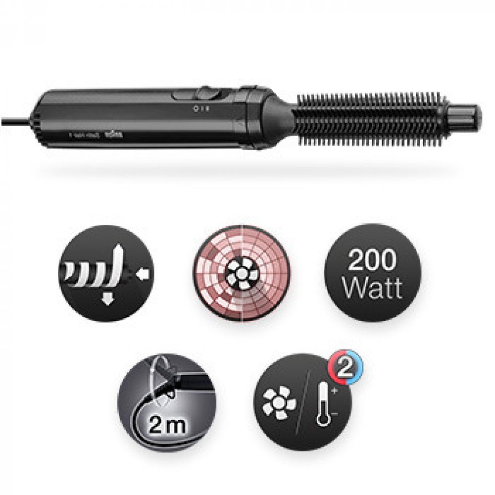 Braun kulmofény 200 W 2 2 1 krátké vlasy černé Černý malé (do 30 mm) 2 m 850 g keramické pro jemné vlasy základní styling s ochranou