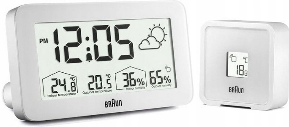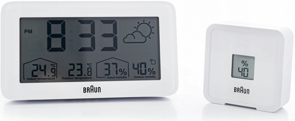 Digitální meteorologická stanice od společnosti Braun je vybavena pozitivním LCD displej s funkcí nepřetržitého podsvícení, který osvětluje displej za zhoršených světelných podmínek a maximalizuje tak čitelnost v noci. Model BC13-DCF lze nastavit v režimu 12 nebo 24 hodin. Model BC13 má přizpůsobitelné rozhraní, které dokáže zobrazit vnitřní i vnější teplotu (°C nebo °F) a vlhkost uvnitř i venku. Venkovní senzor má také displej teploty.