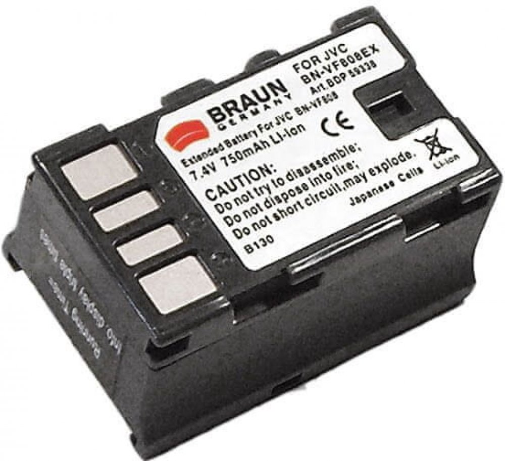 Li-lon akumulátor Braun BDP-JVF808 (19, JVC BN-VF808 – 7,4 V/750 mAh) pro digitální videokamery JVC GC PX10, PX100, GR D720, D725, D740, D760, D770, D815, D818, D820, D825, D860, GR DA, GZ HD3, HD5, HD6, HD7, GZ MG130, MG131, MG132, MG133, MG134, MG135, MG140, MG142, MG148, MG150, MG155, MG175, MG…