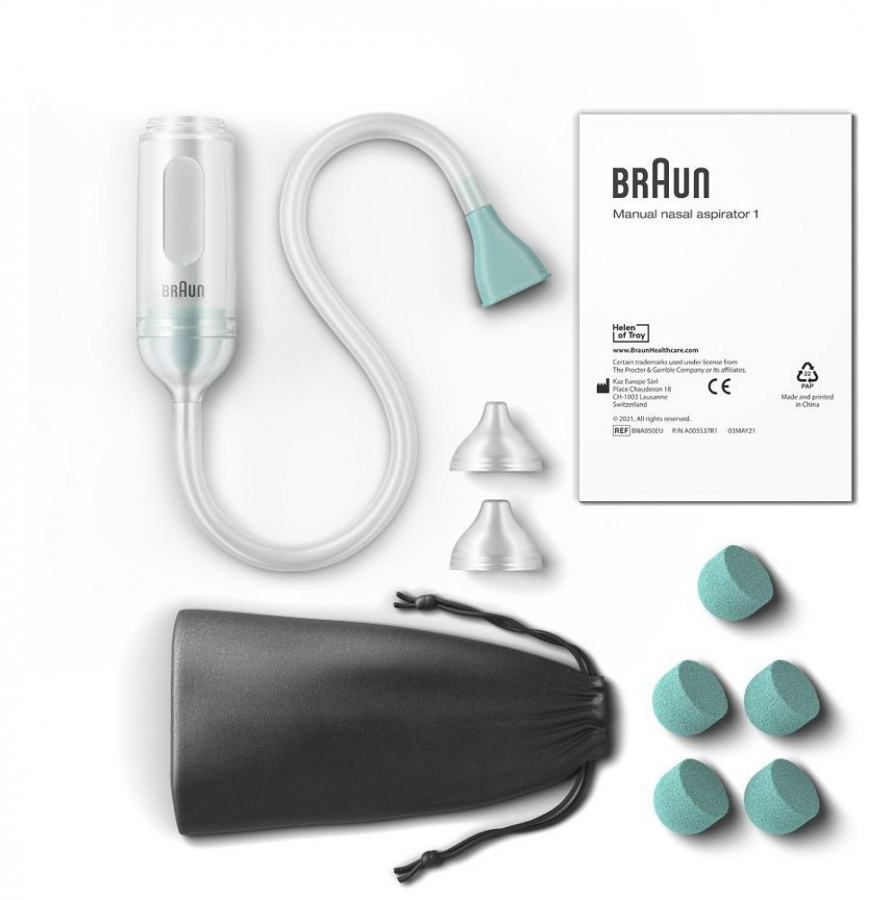 Ruční nosní odsávačka Braun 1 (manuální nosní odsávačka, ovládaná, úleva od ucpaného nosu, odsávačka hlenu, snadné použití, šetrná, jednoduchá, rychlá, dva nosní koncovky, pohodlná, hygienická) Braun Manual Nasal Aspirator 1 je snadno použitelné zařízení, které usnadňuje krmení, dýchání a spaní tím, že poskytuje okamžitou úlevu malým dětem s ucpaným nosem. Vhodné od 0 měsíců, neuvěřitelně šetrné d...