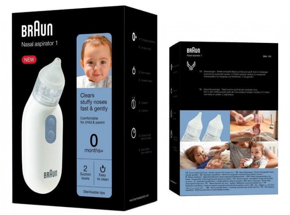 Odsávačka hlenů Braun je kompaktní, lehká a ergonomická. Je to díky její malé velikosti a její předností je i to, že může být použito i při cestování, nebo procházce.