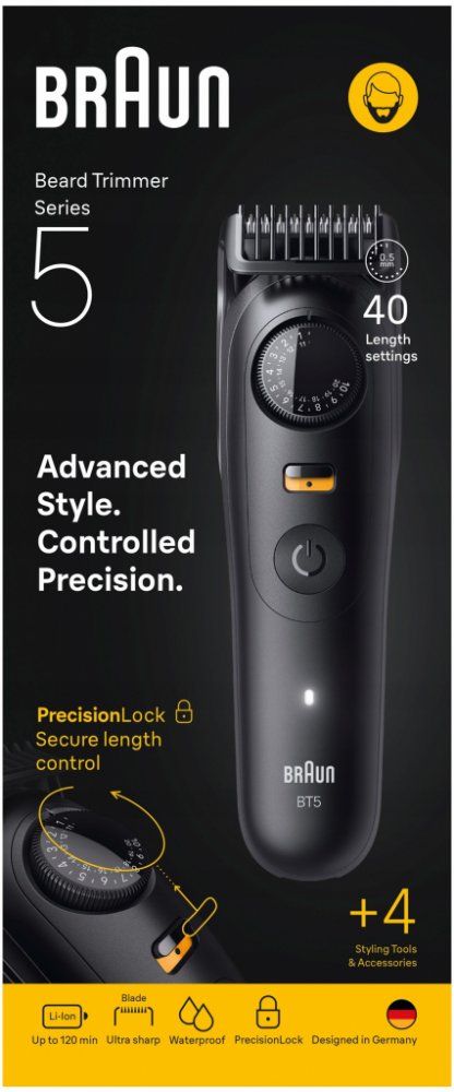 Se zastřihovačem vousů Braun Series 5 BT5520 dosáhnete moderní a precizní úpravy, přesně podle svého stylu. Extrémně ostrý břit, technologie PrecisionWheel a zámek PrecisionLock vám zajistí maximální kontrolu a rovnoměrný výsledek při každém tahu.