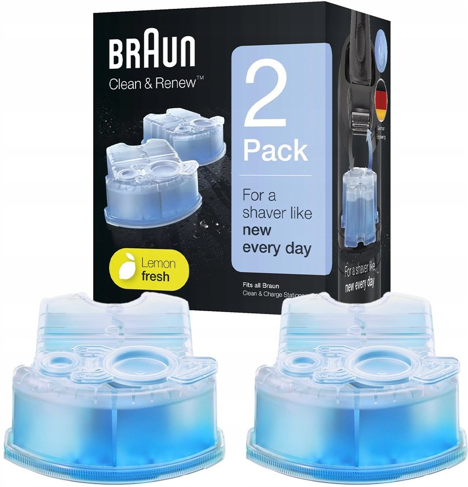 Náhradní kazety pro systém Clean & Renew s čisticí tekutinou na bázi alkoholu a svěží citronovou vůní udržují holicí strojek Braun v perfektním stavu a vždy připravený podat 100% holicí výkon.