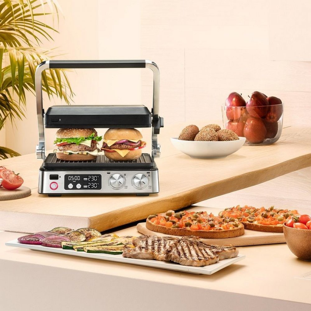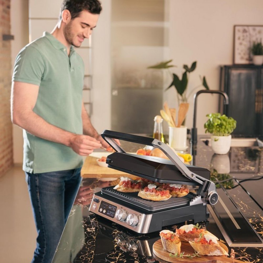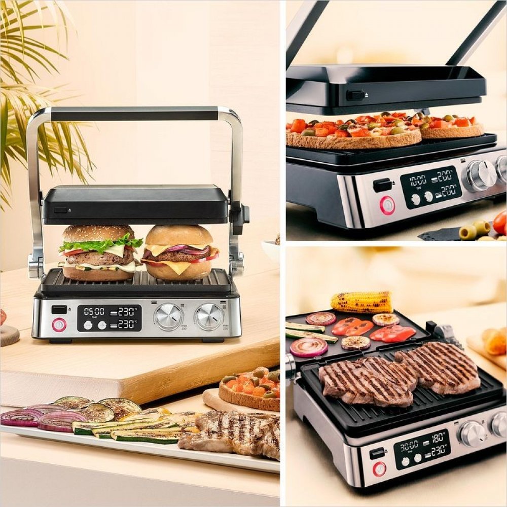 Polohy grilu 3 v 1: kontaktní, otevřená a poloha trouba