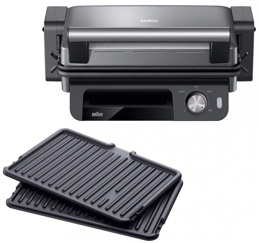 Kontaktní gril Braun MultiGrill 5 CG5033IGYMaximální výkon, minimální námaha při grilováníBraun MultiGrill 5 CG5033IGY spojuje výkon, praktičnost i zdravější styl grilování. Díky rovnoměrnému přítlaku plotýnek se pokrmy propečou z obou stran současně. Můžete si vybrat otevřený BBQ režim pro grilování většího množství jídla nebo režim trouby, který je ideální pro jemné a křehké suroviny. Nakloněné plotýnky zajistí odtok přebytečného tuku přímo do vyjímatelné misky, kterou, stejně jako grilovací plotýnky, jednoduše vložíte do myčky nádobí. S výkonem 2000 W se gril bleskově zahřeje a teplotu si snadno přizpůsobíte přesně podle svých potřeb. Po použití ho stačí postavit nastojato, díky čemuž ušetří místo a skvěle zapadne i do menší kuchyně. Klíčové vlastnosti kontaktního grilu Braun MultiGrill 5 CG5033IGYNabízí 3 polohy grilování - kontaktní gril, BBQ i troubuVysoký výkon 2000 WMožnost nastavení až 230 °CV balení naleznete 2 grilovací žebrované plotýnkyVyjímatelná miska na tuk