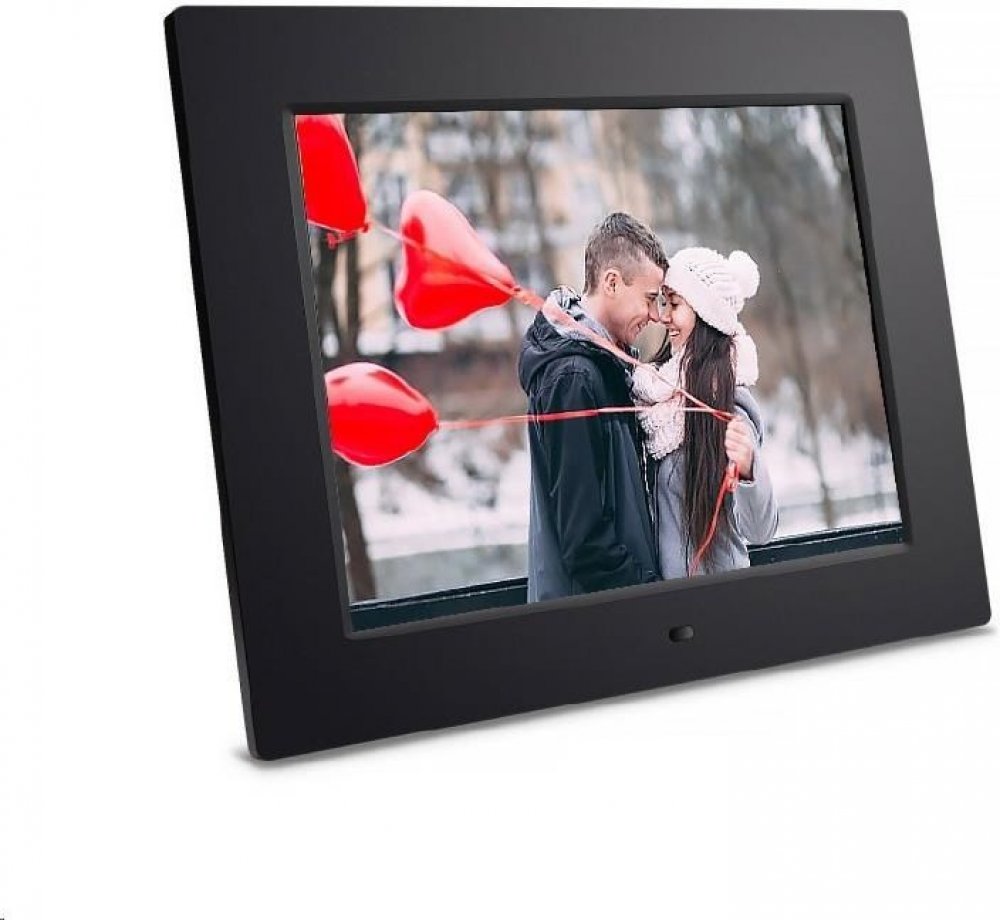 Digitální fotorámeček s úhlopříčkou 10'', IPS, vysoké rozlišení 1024x768px, 4:3, prohlížení obrázků ve formátu JPEG, poslech hudby MP3/WMA a přehrávání videa MPEG1/2/4, AVI, XVID, multislot SDHC/MS a USB2 flash, HDMI in, Audio out, Auto Start, OSD menu, dálkový ovladač, mini USB2, černý. Funkce: SlideShow (prezentace), náhledy, zoom a otáčení obrázků, budík, hodiny, kalendář. Rozměr: 255x207x23 mm, hmotnost 700 g. Možnost uchycení na zeď nebo našrobování stojánku. Energetická kategorie B. Součástí dodávky síťový zdroj AC/DC 5V/2A, dálkové ovládání, mini USB/USB kabel.