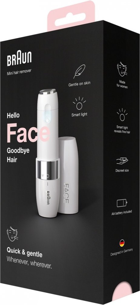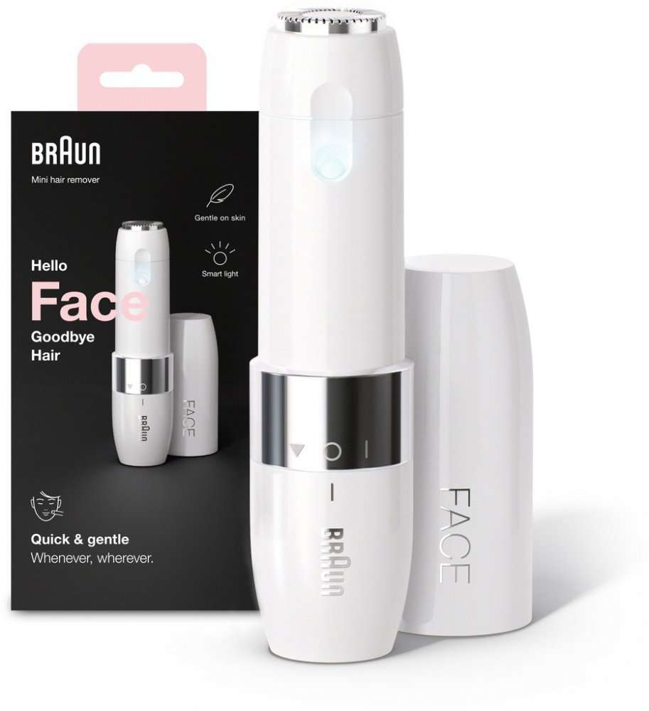 Miniaturní elektrický přístroj nabízí mechanické oholení speciálně pro obličej, vestavěné osvětlení Smartlight pro přesné zacílení a dobíjecí bezdrátové napájení pro pohodlné používání. Přístroj je lehký a přenosný (cca 97 g), dodává se s čistícím kartáčkem a má dostupné náhradní díly pro snadnou údržbu.
