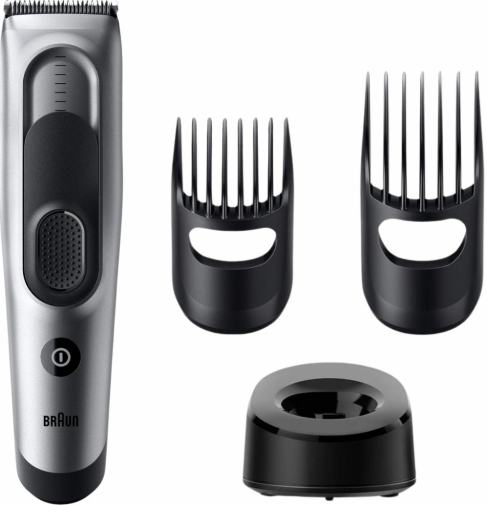 Se zastřihovačem Braun Hair Clipper Series 7 HC7590 si můžete snadno a rychle upravit vlasy přímo v pohodlí vašeho domova. Díky extrémně ostrým břitům si hravě poradí i s hustými vlasy a s jakoukoli délkou. Součástí balení jsou dva posuvné hřebenové nástavce, které umožňují nastavení délky střihu v rozmezí 3-24 mm a 14-35 mm. Funkce Memory Lock si pamatuje poslední nastavení, což usnadňuje opakované použití. Strojek disponuje Ni-MH baterií s dobou provozu až 50 minut, přičemž rychlé 5minutové nabíjení umožňuje okamžité použití i při úplném vybití. Plného nabití dosáhne za 60 minut nabíjení. Pokud je baterie vybitá, lze zastřihovač používat i při zapojení do elektrické sítě. Manipulace se strojkem je snadná díky ergonomickému tvaru s pogumovaným úchytem a lehké konstrukci, která pohodlně padne do ruky. Strojek je plně omyvatelný, což usnadňuje jeho údržbu. Součástí balení jsou 2 hřebenové nástavce, nabíjecí stojánek, nabíjecí adaptér, čistící kartáček a praktické pouzdro se šňůrkou pro snadné uložení.Barva: šedá Provoz: akumulátorový/síťový Vlastnosti:- zastřihovač vlasů pro domácí použití- ergonomická rukojeť s pogumováním- extrémně ostré břity- 17 možností délek střihu- Ni-MH baterie- doba provozu 50 minut- doba nabíjení 60 minut- 5 minut rychlého nabíjení pro okamžité použití- malý hřebenový nástavec pro délky střihu 3-24 mm- velký hřebenový nástavec pro délky střihu 14-35 mm- zámek poslední použité výšky střihu- plně omyvatelný pod tekoucí vodou- lehký (pouze 165g)Balení obsahuje: - 2 hřebenové nástavce - nabíjecí stojánek- nabíjecí adaptér- čisticí kartáček - pouzdro pro uložení