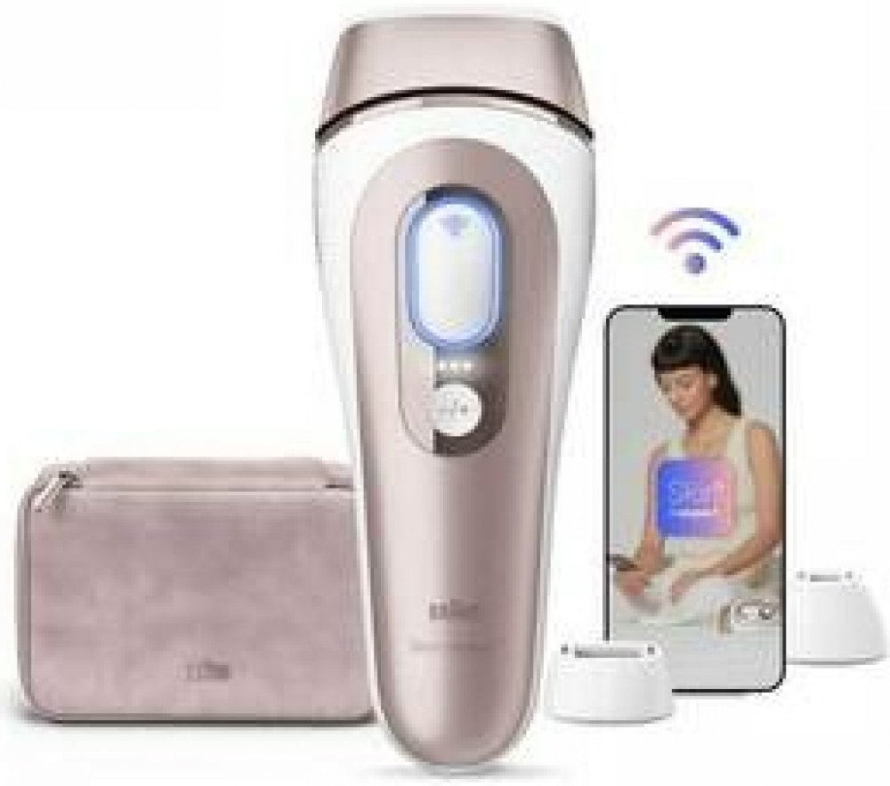 IPL epilátor - na obličej, nohy, intimní partie, záda a tělo, unisex, snímání odstínu pokožky, rychlé nabíjení a smart funkce, elektrické napájení, 3 nástavce, 3 hlavice, pouzdro / taštička součástí balení, bílá a růžová barva